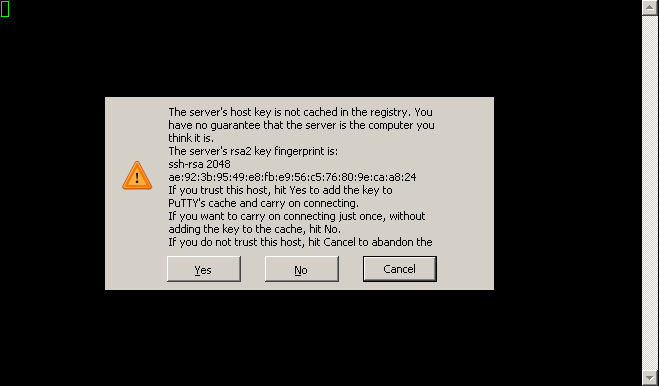 Putty will once ask you to verify the SSH Servers fingerprint, you can answer with either Yes or No.